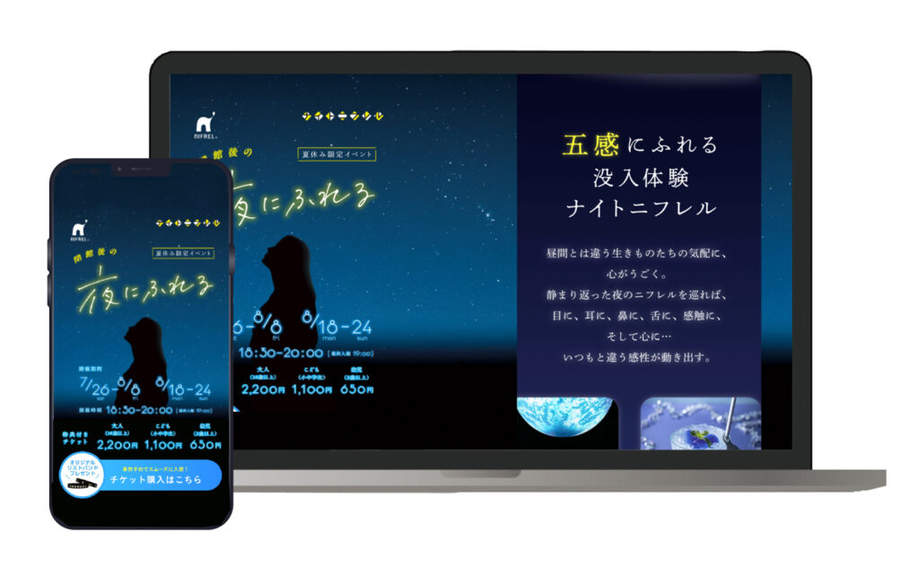 キービジュアルの世界観をWebサイト全体に展開し、イベントの魅力を最大限に訴求しました。また、訪問者にとって最適な情報設計を追求し、視覚的な訴求力と高いユーザビリティの両立を図りました。自動翻訳ツールを活用した多言語対応においては、翻訳によるレイアウト崩れや動作の不安定化が課題となります。ディレクター、デザイナー、フロントエンド部門がプロジェクト初期段階から密に連携することで、多言語環境下でもビジュアル品質と動作の安定性を確保したサイト構築を実現しました。